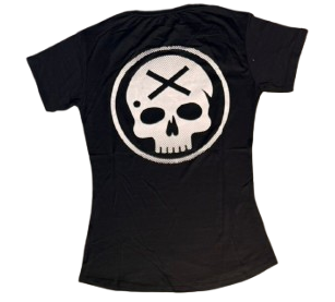 Nas costas, o design marcante de uma caveira estilizada com ossos cruzados dentro de um círculo reforça a pegada urbana e autêntica da peça.